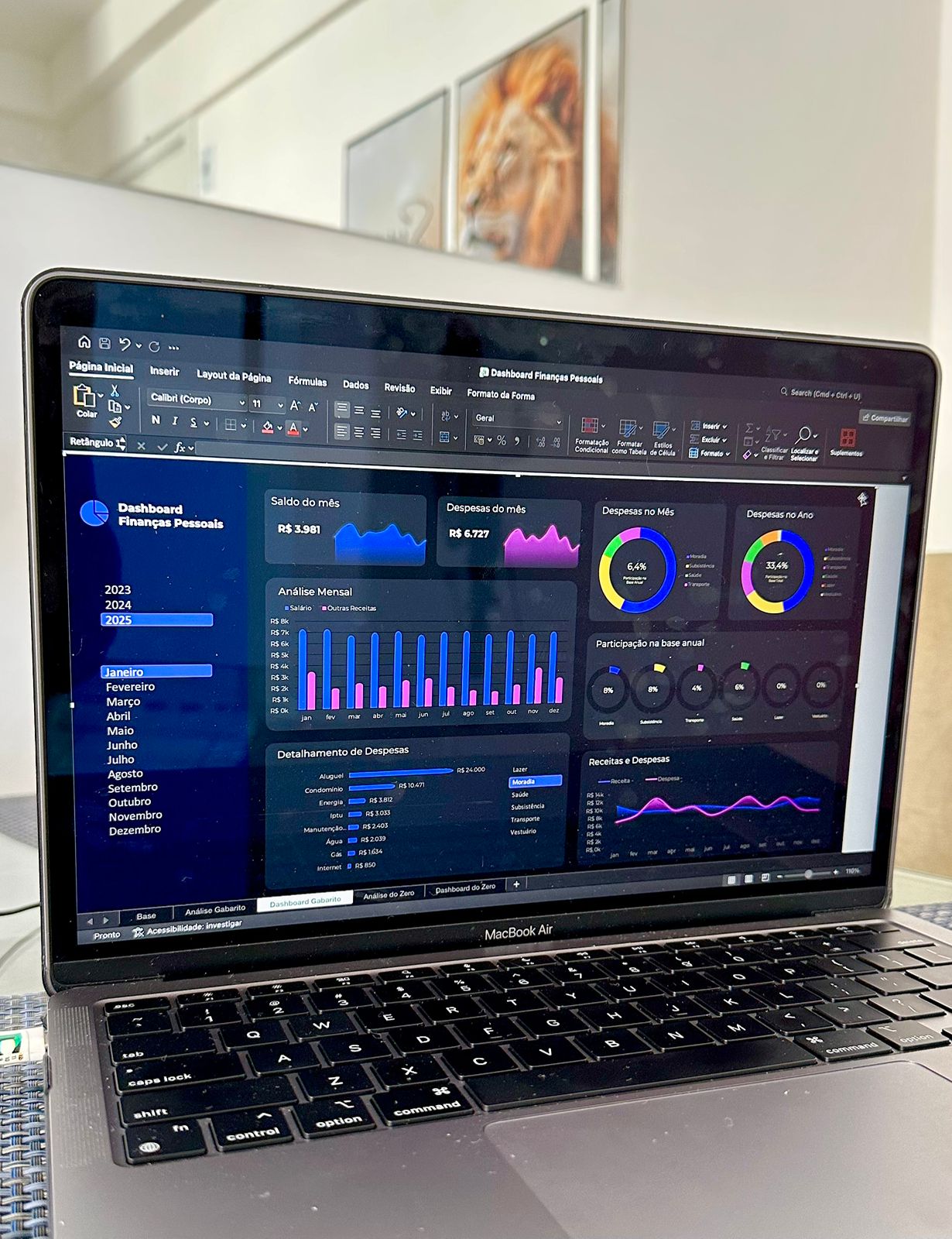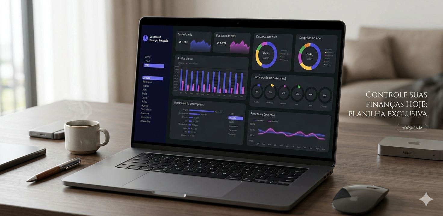 Você terá acesso a gráficos automáticos, indicadores de desempenho financeiro, controle mensal detalhado e acompanhamento de metas, tudo organizado para oferecer uma visão estratégica do seu dinheiro.
